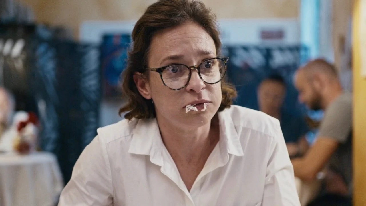 It's morning. Sabine discovers a pregnant woman in the shower, then a soldier at the breakfast table. A blood stain grows on her left breast when she sees her companion having sex with a woman at the kitchen table. She has to change her blouse. This day is off to a bad start. Yes, a bad day...